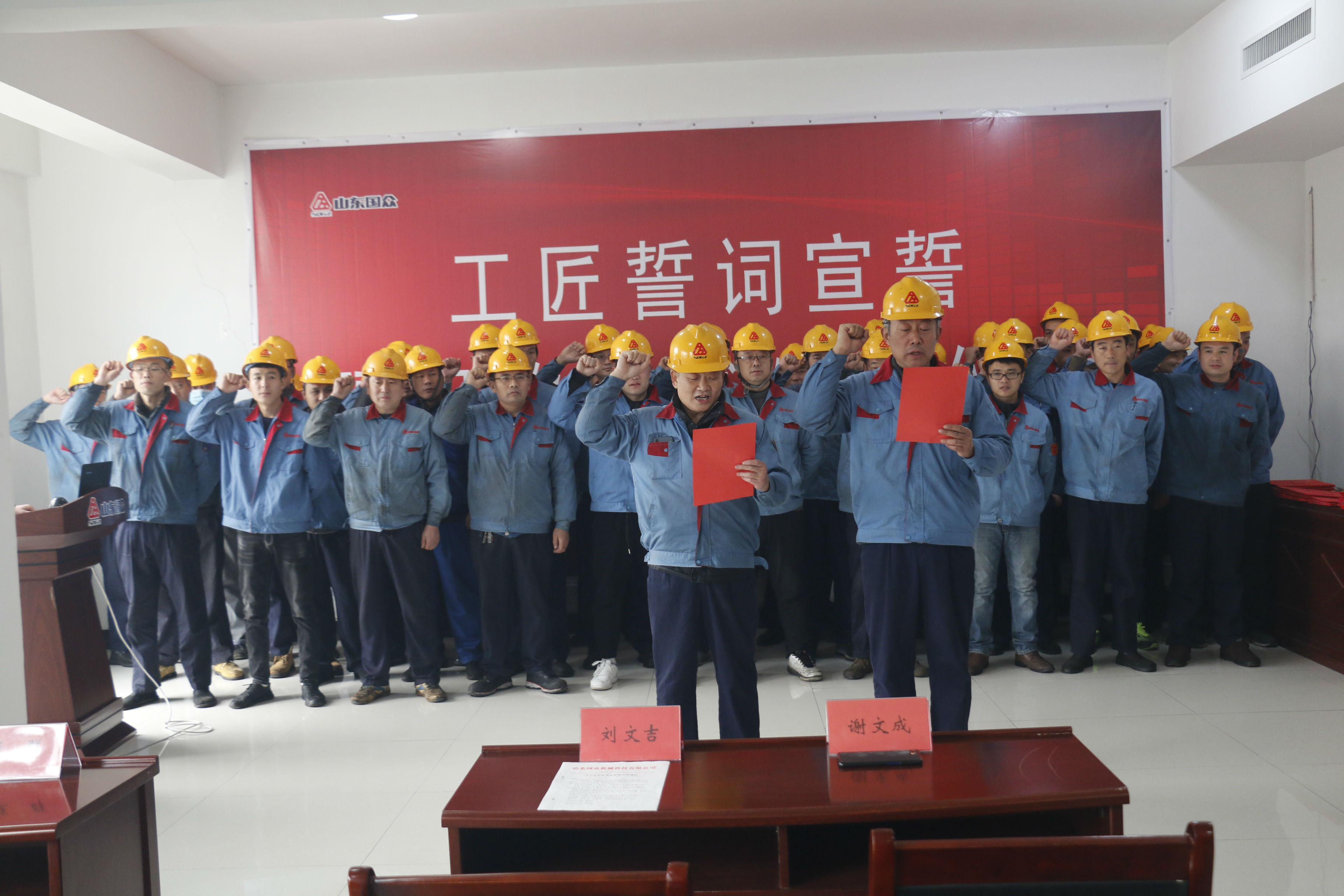 2020年12月12日上午11時(shí),山東國眾機(jī)械科技有限公司在一樓培訓(xùn)室,舉行了莊嚴(yán)的工匠宣誓暨職稱聘任儀式。謝文成總經(jīng)理等公司領(lǐng)導(dǎo)和受聘工匠代表參加了本次活動(dòng),公司常務(wù)副總經(jīng)理劉文吉主持了此次活動(dòng)。