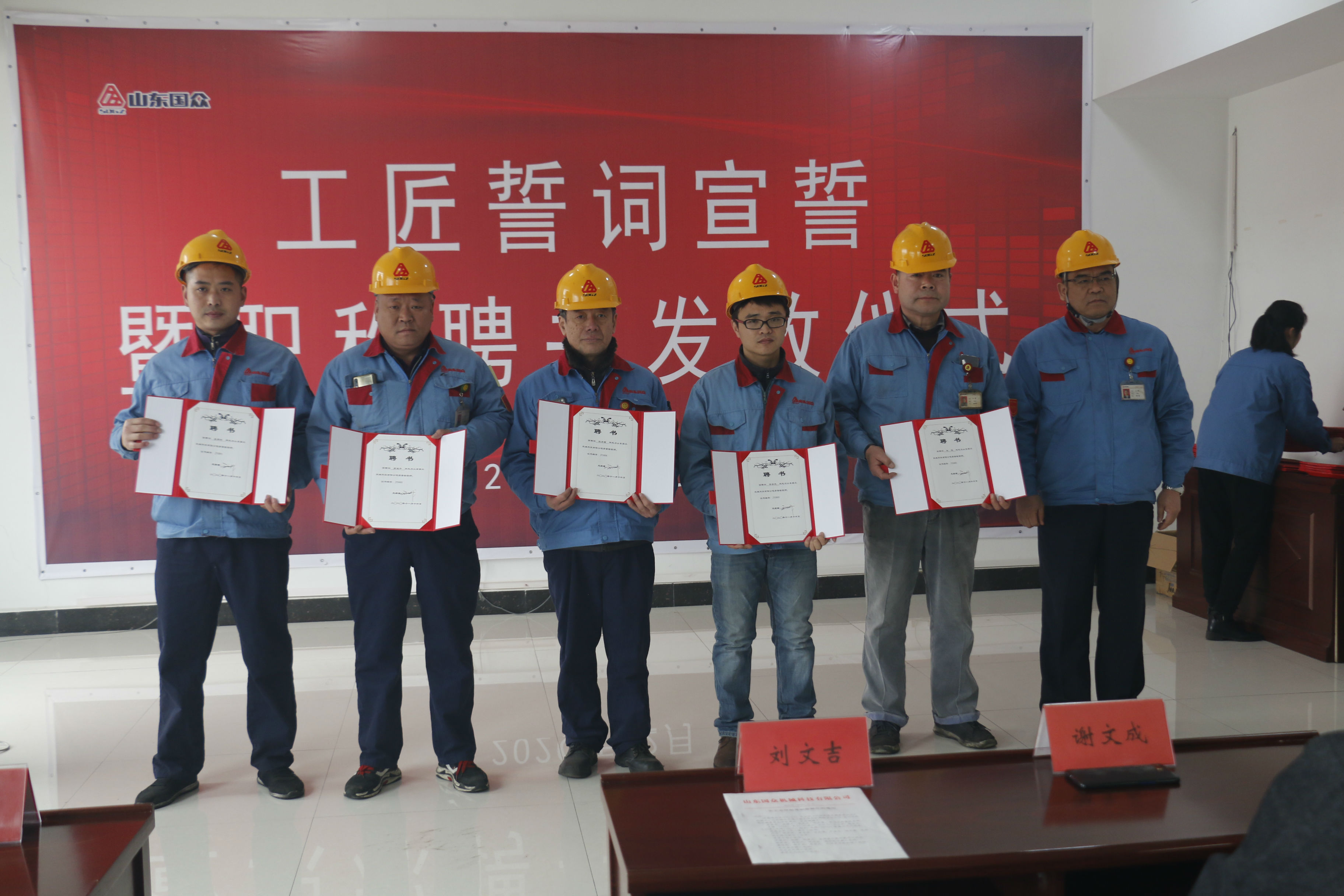 劉總為工匠頒發(fā)聘書