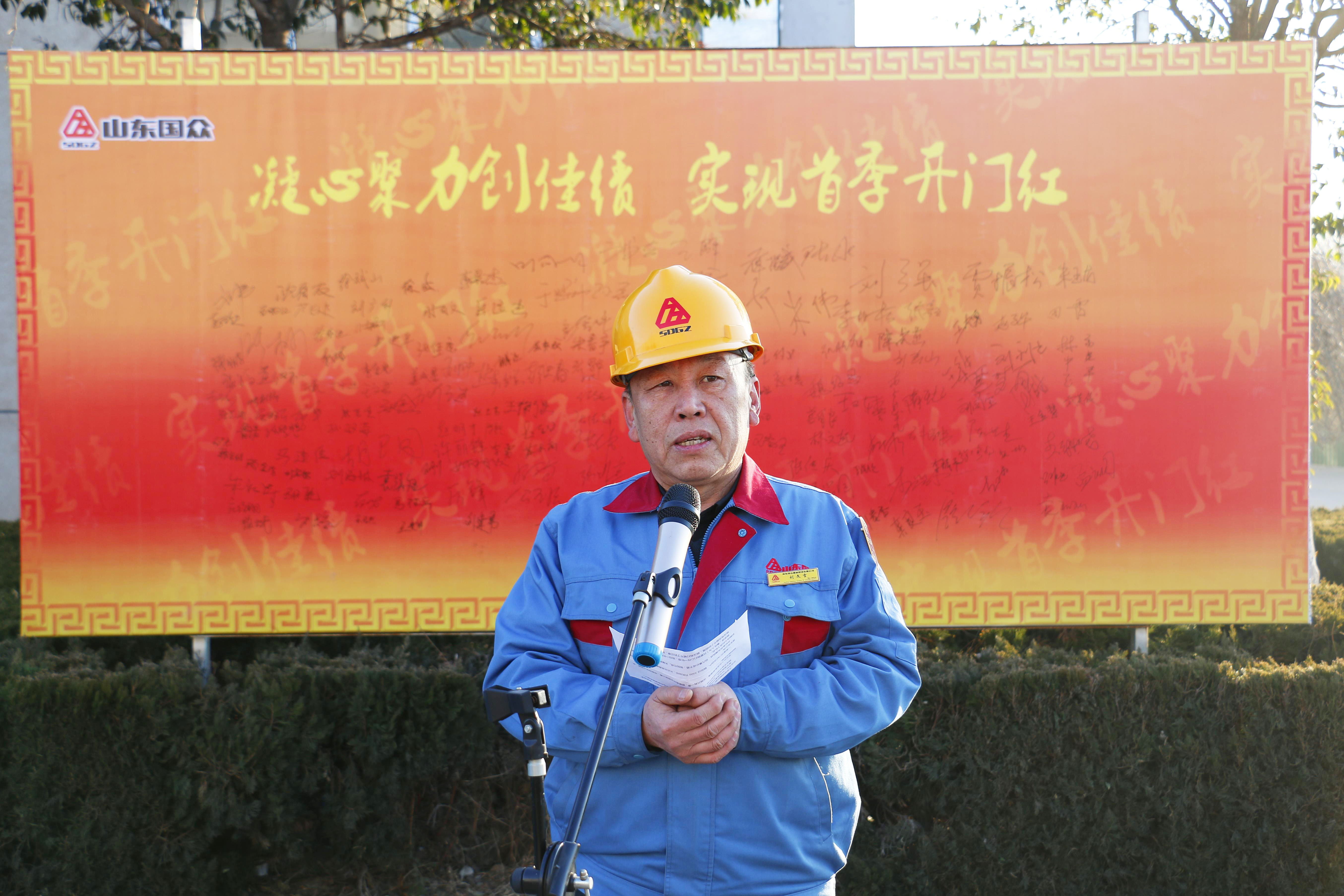 山東國(guó)眾機(jī)械科技有限公司于2025年2月9日早上,在7號(hào)車間門外隆重召開“一季度開門紅”銘志簽字儀式。公司領(lǐng)導(dǎo)以及全體員工參加本次活動(dòng),副總經(jīng)理崔新平主持本次活動(dòng)。